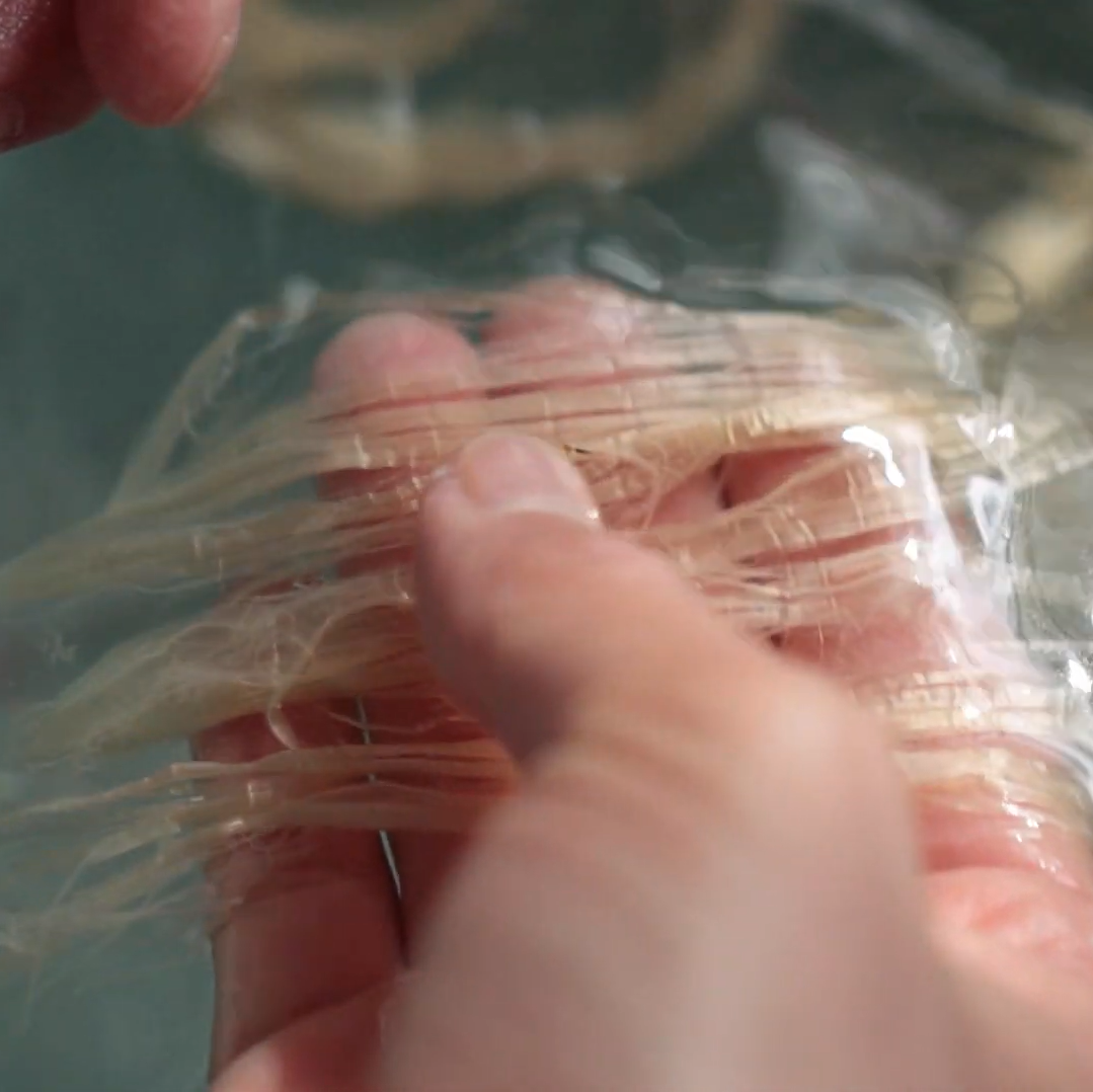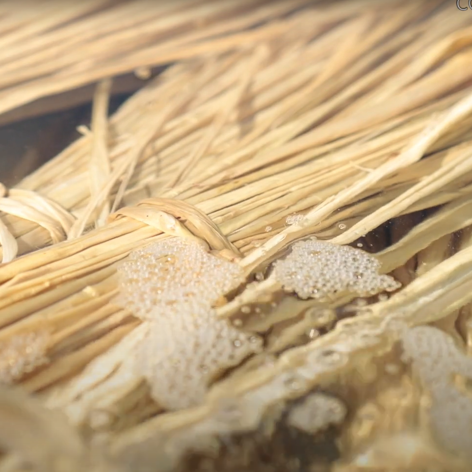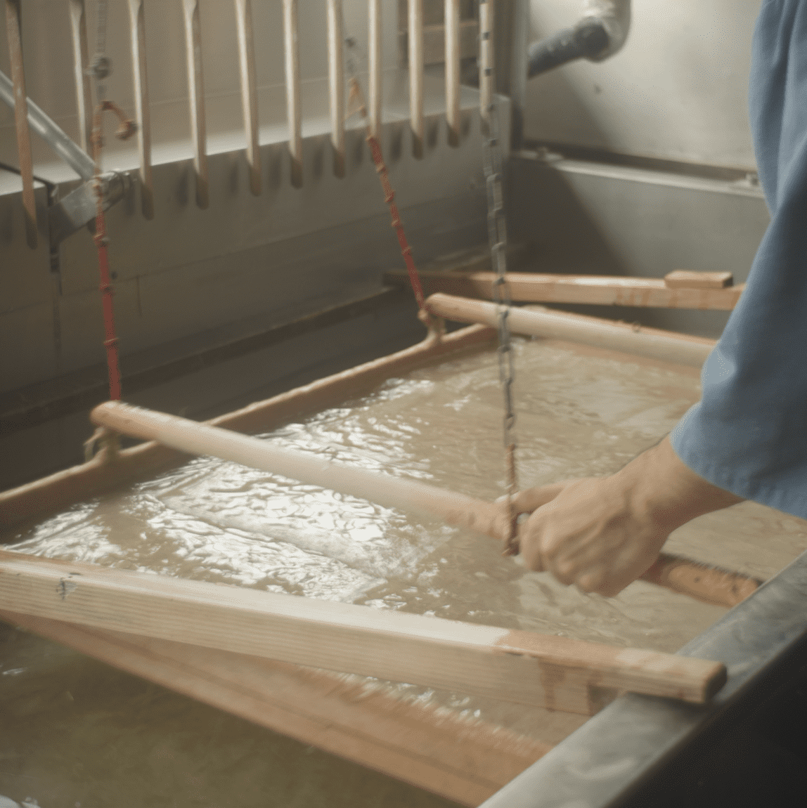 The paper products are both handmade and machine made, but in general, the bast, or inner bark, is first soaked and boiled in hot water. Then its fiber is beaten with a rod so that the fibers are pulled apart without getting destroyed. Then it is mixed with water and tororo-aoi, which is used as a glue. The mixture is next poured into a Suki-bune, or paper making boat, to form a sheet of paper. The paper is stacked wet, the water is pressed out, then laid out to dry on a board.